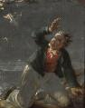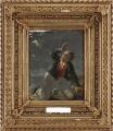 En sømand kravler op på land en stjerneklar nat. Usigneret. Olie på træ. 17×13,5 cm.