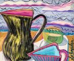 “Big Pitcher”, 2013. Signeret Schneider; signeret og dateret med titel på bagsiden. Olie på lærred. 152×182 cm. Uindrammet.