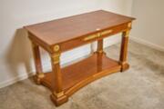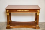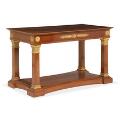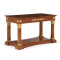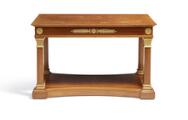 A French Empire style mahogany and gilt bronze mounted centertable. C. 1900. H. 78 cm. W. 129 cm. D. 66 cm.