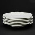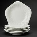 “Hvid Konkylie”. Seks store middagstallerkner af porcelæn, dekoreret med klar glasur. Tryksign. monogram. Kgl. P. Diam. 27. (6)