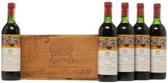 4 bts. Château Mouton Rothschild, Pauillac. 1. Cru Classé 1987 A-A/B (bn). Owc. 2 bts. Château Mouton Rothschild, Pauillac. 1. Cru Classé 1987 A/B (ts). Owc. 1 bt. Château Mouton Rothschild, Pauillac. 1. Cru Classé 1987 B (ts/us). Owc. 3 bts. Château Mouton Rothschild, Pauillac. 1. Cru Classé 1987 B/C (us). Owc. Total 10 bts.