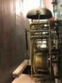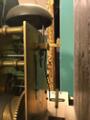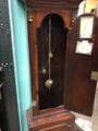 Brugsslitage. Der gives ingen garanti for værkets funktion. Pendul og To lodder medfølger. Optræksnøgle og nøgle mangler. Døren til kassen er åben, døren til skiven er låst.