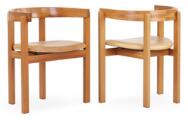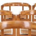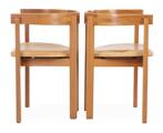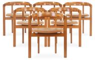 Set of six mahogany armchairs. Seat upholstered with brown, patinated leather. Manufactured by Gorm Lindum. (6)