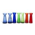 Samling forskellige optisk drejede hyacintglas af rød, blå, brun, grøn og ametystfarvet glasmasse. Danmark 19–20. årh. H. 18–20,5 cm. (13)