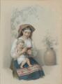 En italienerinde med et barn på skødet. Sign. Ed. L. 1882. Bly og vandfarve på papir. Lysmål 18×14.