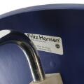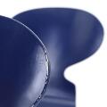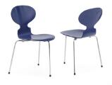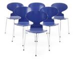 “Ant Chair”. Set of six chairs with steel legs. Blue lacquered wood seat and back. Model 3101. Designed 1952. Manufactured and marked by Fritz Hansen, one chair with label. (6)