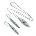 Diamantsmykkesæt af 18 kt. hvidguld bestående af halskæde med vedhæng og et par ørestikker hver prydet med turkis sten og talrige brillantslebne diamanter på i alt ca. 2.98 ct. Farve: Top Wesselton (F-G). Klarhed: VVS. L. halskæde ca. 44 cm. L. vedhæng ca. 5 cm. L. ørestikker ca. 6,4 cm. (3)