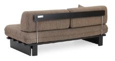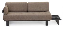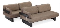 Sofa i to dele af sortlakeret træ. Hynder betrukket med brun uld. Udført hos Dux, mærket under sædehynder. Hver del: L. 167. (2)