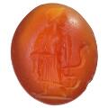 Roman Empire, carnelian intaglio with an image of Aesculapius, 2nd-3rd century, 14 mm x 11 mm.