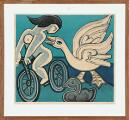 “Leda og Svanen”. Signeret Heerup. Litografi i farver. Lysmål 47 × 54 cm. “Ægget”. Signeret Heerup, 206/500. Litografi i farver. “Svanen”. Signeret Heerup, 206/500. Litografi i farver. “Regn”. Signeret Heerup, 206/500. Litografi i farver. “Kaffetrold”. Signeret Heerup, 206/500. Litografi i farver. Lysmål 45×32 cm. (5)