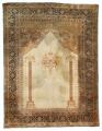 A full silk Tabriz rug, Persia. Arch design with columns and hanging oil lamp. C. 1940. 123×161 cm.