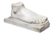 A marble, grey mottled, right foot carved with square base. 19th century. L. 40 cm. W. 17 cm. H. 20 cm.