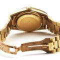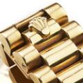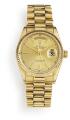 A gentleman's wristwatch of 18k gold. Model Day-Date, ref. 18038. Chronometer certified automatic movement with day and date. Gold-coloured dial with hands and hour markers of gold. Rolex “President” bracelet of 18k gold with concealed folding clasp. Circumference app. 20 cm. Watch diameter 36 mm. 1987.
