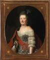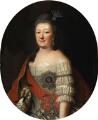 “Letzte Fürstin von Zerbst”. Den sidste fyrstinde af Zerbst. Portræt af Prinsesse Friederike af Anhalt-Zerbst (1744–1827), født prinsesse af Anhalt-Bernburg, med opsat hår, diamantaigrette og -øreringe, iført kjole med kniplinger og hermelinskåbe samt bærende den russsiske Skt. Katharina-orden. Usigneret. Olie på lærred. Oval i fire-sidet ramme. 76×61. Lysmål 73×59 cm.