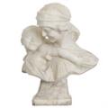 Italiensk buste af hvid alabast, dobbelt portræt, mor og barn, sokkel af marmor. Sign. Giuseppe Bessi. H. 47. H. inkl. sokkel 61,5. B. 46.