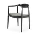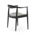 “The Chair”. A black lacquered mahogany armchair. Seat with grey fabrik. Made by cabinetmaker Johannes Hansen.