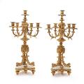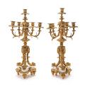 Et par Napoleon III kandelabre af forgyldt bronze med seks lysarme arme, stamme støbt med akantus bladværk og ornamentik på trepas fodstykke med hvid alabast. Frankrig, 19. årh.s slutning. H. 64 cm. (2)