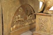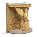 Sengustaviansk konsol af forgyldt og bemalet træ med ørn, plade af hvid marmor. Göteborg, 18. årh.s slutning. H. 87. B. 86. D. 52.