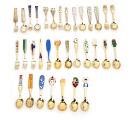 Comprising: spoon and fork 1929, replica spoon and fork 1943–1947 and 1948 spoon. Forks replica spoons 1952–1955 spoon and fork 1956, replica fork 1957–1958, replica spoon and fork 1959, replica forks 1960–1963 spoon 1964, 1966–1969 spoon1970 and 1972 Georg Jensen spoon 1973