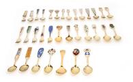 Gilt and enamelled sterling silver Christmas cutlery. A. Michelsen. Further, a Georg Jensen 1973 spoon. Weight 1469 g. (32+1)