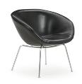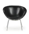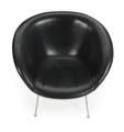 “The pot chair”. Armchair with steel tube frame. Sides, seat and back upholstered with black leather. Model 3318. Designed 1959. Manufactured by Fritz Hansen.