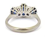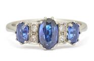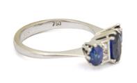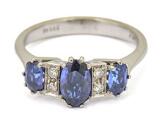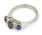 A sapphire- and diamond ring set with three oval-cut sapphires weighing a total of app. 1.00 ct. and single-cut diamonds weighing a total of app. 0.07 ct., mounted in 18k white gold. Size 51.5.