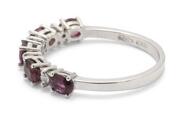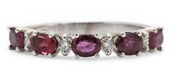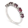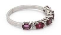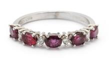A ruby and diamond ring set with five oval-cut rubies weighing a total of app. 1.23 ct and four brilliant-cut diamonds weighing a total of app. 0.10 ct, mounted in 18k white gold. Colour: G-H. Clarity: VS-SI. Weight app. 2.5 g. Size 53.