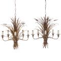 A pair of sheaf shaped five light French chandeliers of gilded metal, made for electricity. 20th century.H. 70 cm. Diam. 57 cm. (2)