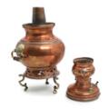 A mid-18th century Danish copper and brass samovar with pierced foliate ornamentation at top and base. Maker presumably Hans Ernst Sanuel, Hobro 1751. H. 43 cm.