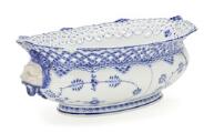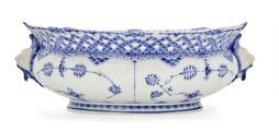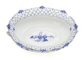 'Blue Fluted Full Lace' porcelain jardiniere. 1069. Royal Copenhagen, efter 1923. H. 13 cm L. 40 cm.