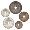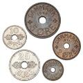 Færøerne, officielle mønter, 1 øre - 25 øre 1941, komplet sæt. Flotte eksemplarer med noget møntskær. (5)