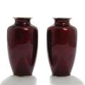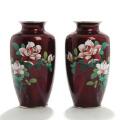 A pair of 20th century Ginbari cloisonné vases, decorated with roses on red ground. Marked Sunkyou. H. 19 cm. (2)