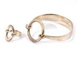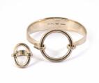Smykkesæt af sterlingsølv bestående af ring og oplukkelig armring. Samlet vægt ca. 55,5 g. Ring front B. 2,1×2,5 cm. Str. 50. Armring front B. 3,5 cm. Indvenndig diam. ca. 6,3 cm. (2)