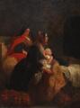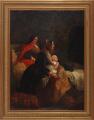 Interior with italian women and a little child. Signed T.H. Oil on canvas. 62×46 cm.