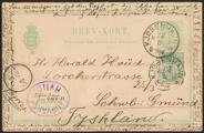 1884. 5 Øre, green on 5 øre stationery from København to Germany 22.6.1893. Manuscript “EXPRES” but sent without further postal notation [ 34 ] [ ✉ ]