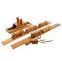 En samling legetøj af lakeret bøg. Delvis stemplet Kay Bojesen, Mønsterbesk. (10)