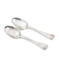 A pair of baroque dinner spoons of silver. Marked HS and 13. Total weight app. 132 g. L. 19.5 cm. circa 1700. (2)