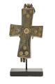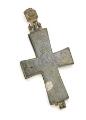 Byzantinsk “Enkolpion” af bronze, relikviekors, front indridset med Guds Moder og helgener, bagside med stiliseret design. På stand. 8.-12. årh. H. inkl. øsken 9,8 cmy.