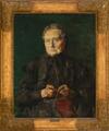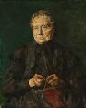 En ældre kone, der strikker sokker. Sign. C. Krohg 17. Olie på lærred. 79×62.