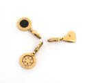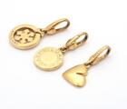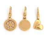 Tre vedhæng af 18 kt. guld, heraf en prydet med onyks skive. Samlet vægt ca. 11,5 g. L. inkl. øsken 2,5–2,9 cm. (3)