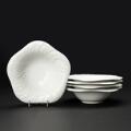 “Hvid Konkylie”. Fem dybe tallerkner af porcelæn, dekoreret med klar glasur. Tryksign. monogram, 604. Royal Copenhagen. H. maks. 5,5. Diam. 20,5. (5)