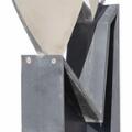 “Hommage à Egill Jacobsen”. Signed B J. 84. Stainless steel and iron. H. c. 290 cm. incl. base. Base 150×200×6 cm.