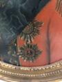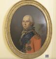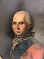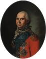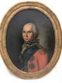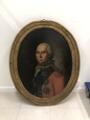 Portrait of Landgrave Carl of Hesse-Kassel (1744–1836) in a red general's uniform with gold embroidery, white necktie and lace frill, powdered wig and black neck bow. He wears the blue ribbon and star of the Order of the Elephant, the breast star of the Hessian Golden Lion and around his neck the Hessian Military Order of Merit. Unsigned. Oil on canvas laid on panel. Oval. 70×55 cm.