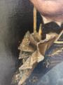 The canvas is mounted on wooden board. Small crackles with retouches. See UV-light-photographs for more information.