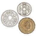Patterns, 2 and 20 kr 1986, GP 34b,g, GP 37a,d, as well as 5 kr 1994 error coin with misplaced hole, in total 3 pcs