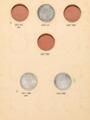 Samling af 8 stk. røde Siegs album med danske mønter fra 1 øre til 2 kr med enkelte bedre iblandt