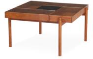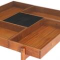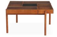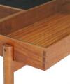 Prototype of the “Display Table” with mahogany frame. Top with four loose glass plates, under which compartment. Center of table with loose, black slate plate. Incl. brass tool for lifting glass plates. Made by Michael Bloch. H. 60 cm. L./W. 105,5 cm.