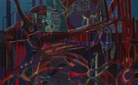 “Fra min skov. - aften”, 1970. Signeret med titel og datering. Olie på lærred. 100×160 cm.