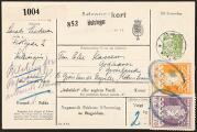 1930. 70 øre, purple and 1 kr. orange on DANISH PARCEL-CARD franked with 40 øre, green. Sent from Helsingør 16.9.1935 to Godhavn, via Grønlands Styrelse. Very rare mixed franking [ 10,11 ] [ ✉ ]