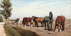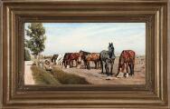 Field workers taking a lunch break. Signed and dated Otto Bache 1883. Oil on canvas. 27.5×53 cm.
